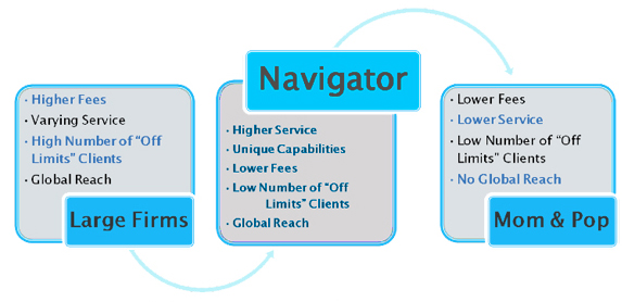 Navigator Search Advisors is a premier global boutique executive search firm with a proven track record of delivering top talent to discerning clients. We combine unparalleled proprietary technology with an extensive international network to source high-performing passive candidates. We also focus on creating successful partnerships with Fortune 500 corporations, private equity firms, small businesses and not-for-profit entities. Our service niche offers a best of both worlds approach to delivering exceptional service with affordable fees.